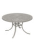 The La'Stratta Round Umbrella Dining Table, designed by John Caldwell, features precision cut details. The exclusive La'Stratta design compliments all Tropitone® furniture collections. This patterned aluminum outdoor table is ideal for any hospitality setting. This La'Stratta Round Dining Table can pair with a Basta Sole® Umbrella for a delicious culinary experience in any weather.